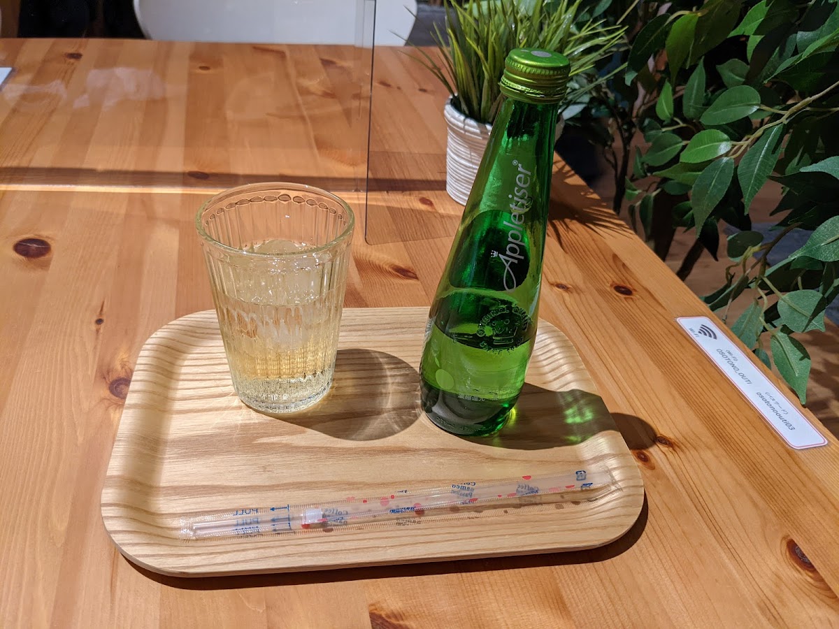 IN MY PLACE おそとのお家 is a thoughtfully designed café tucked into the Grand Mall in Toyosuna, Mihama Ward. It carves out a quiet corner for visitors looking to settle in with a coffee or soft drink like their Appletiser, amid the busy surroundings of the mall.